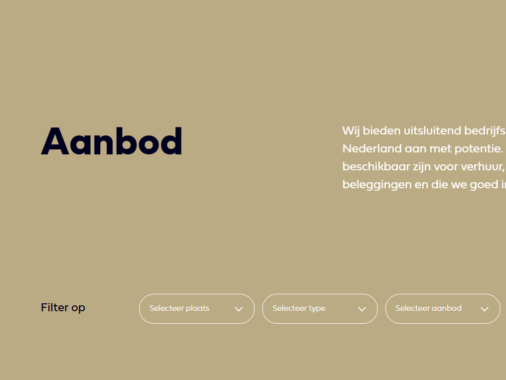 Bent u op zoek naar een geschikt bedrijfspand? Dan helpen wij u hier graag bij. Samen gaan we op zoek naar dé perfecte bedrijfsruimte.